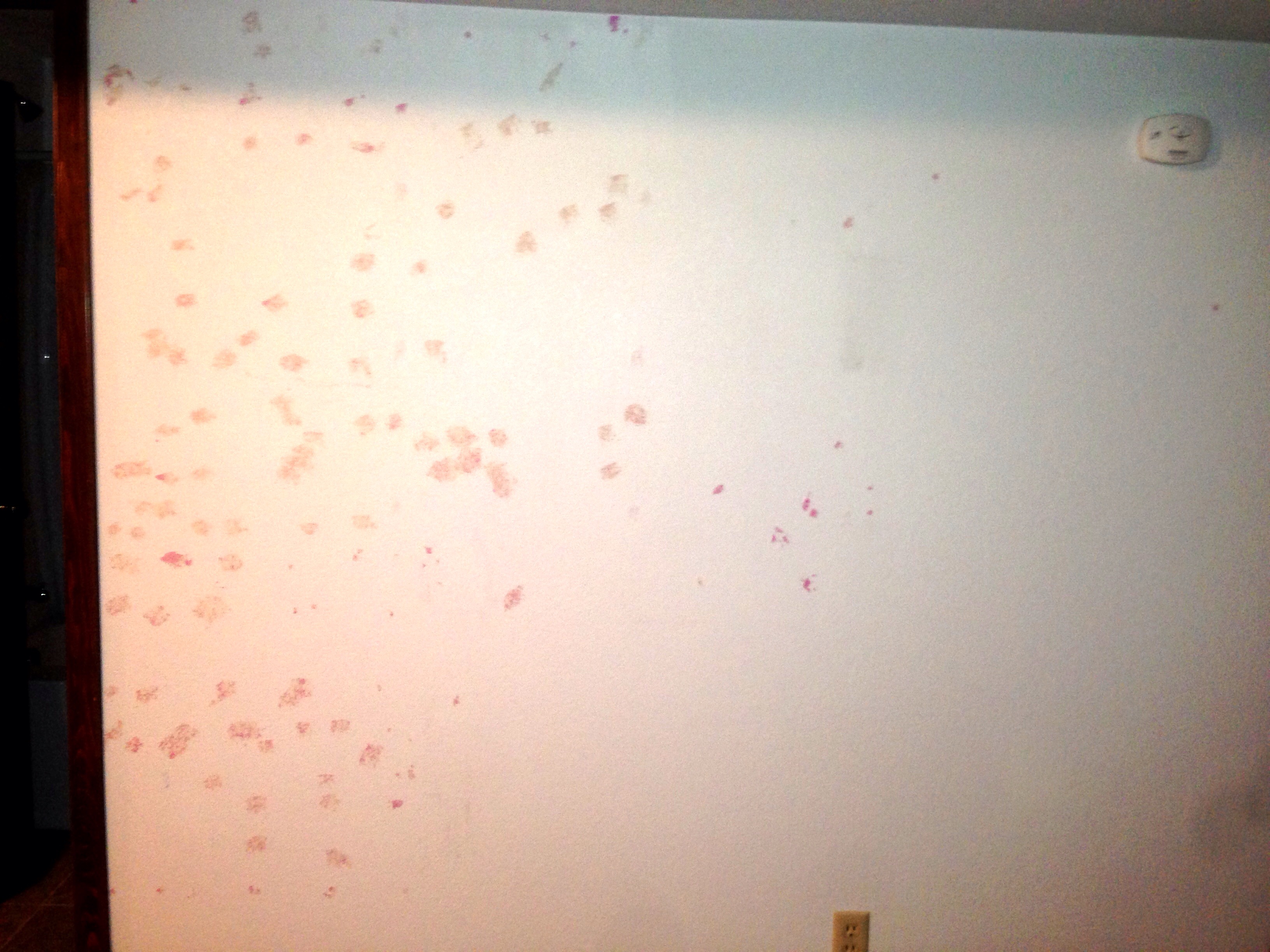 Here’s one wall, for example.  All of those little spots are spackled holes.
